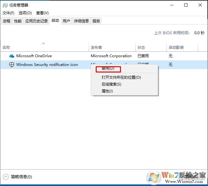 如果你不喜歡這個(gè)圖標(biāo)出現(xiàn)在你的右下角里,那么你可以禁用它,如果需要設(shè)置,可以在Windows設(shè)置——windows安全中打開進(jìn)行設(shè)置。禁用方法,打開任務(wù)管理器——啟動(dòng)——右鍵禁用即可。
