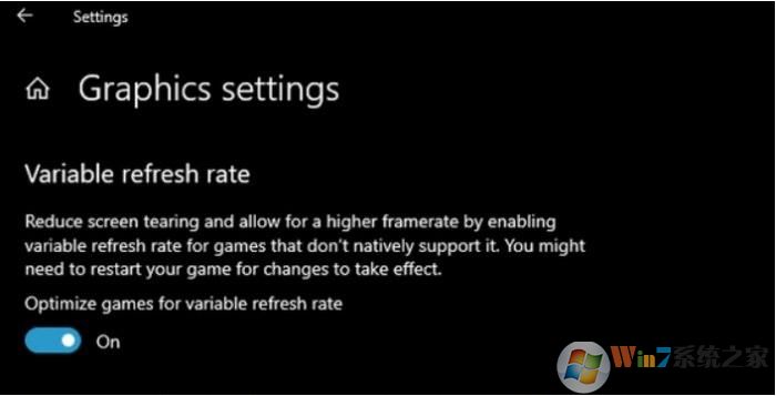 不過需要注意的是該功能默認(rèn)處于關(guān)閉狀態(tài),這項(xiàng)功能的目的在于為那些不原生支持的游戲提供可變的刷新率,提高更高的屏幕刷新率從而減少屏幕撕裂感。但是這項(xiàng)功能只支持某些 Win10應(yīng)用商店下載安裝的的應(yīng)用和游戲,那些經(jīng)典游戲應(yīng)該不在該功能范圍之內(nèi)。