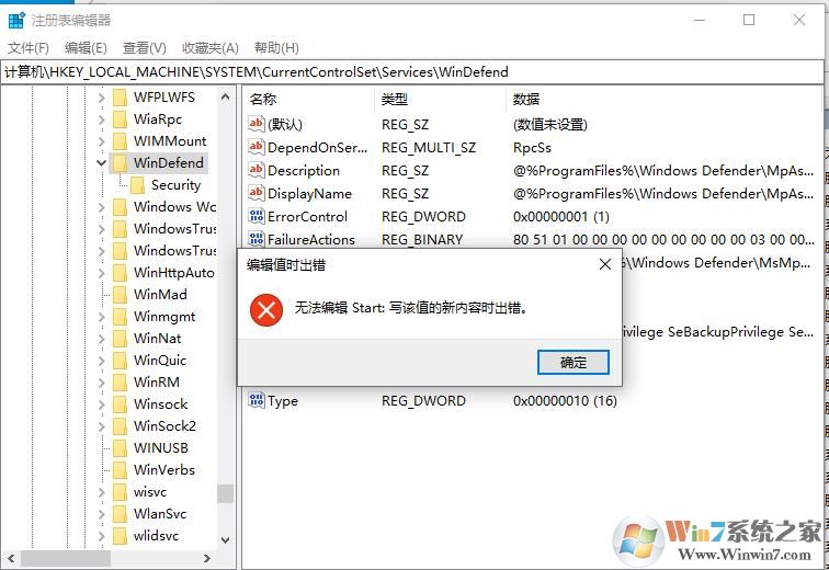 2、找到路徑:HKEY_LOCAL_MACHINE\SYSTEM\CurrentControlSet\Services\Windefender;