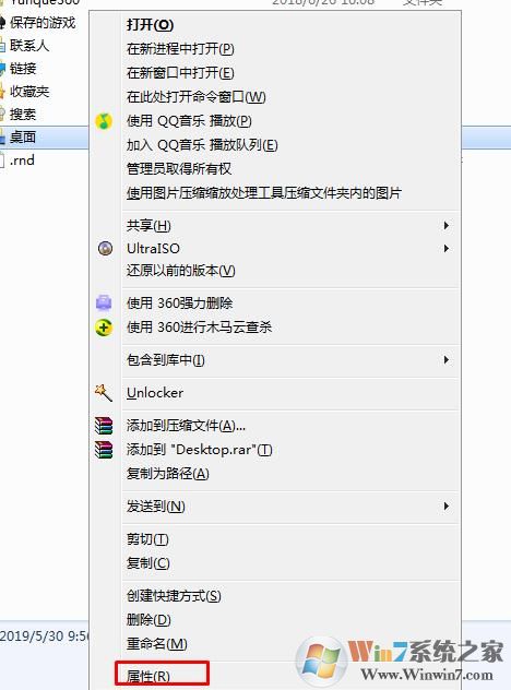 2、接下來,右鍵點擊這個桌面文件夾,打開屬性;
