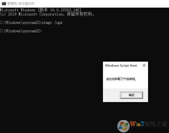 2、打開命令提示符之后,我們再輸入 slmgr /upk