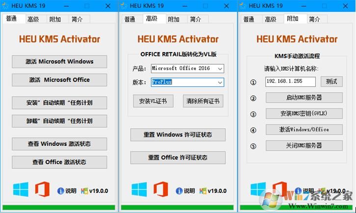 一款國(guó)內(nèi)大神開發(fā)的KMS激活工具,可以一鍵激活windows10、Office 2010-2019版本,不管是win10還是Office都不怕激活了。
