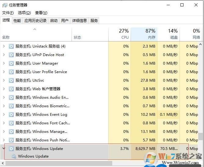 2、默認(rèn)情況下windows update服務(wù)不會(huì)占用過(guò)多內(nèi)存;