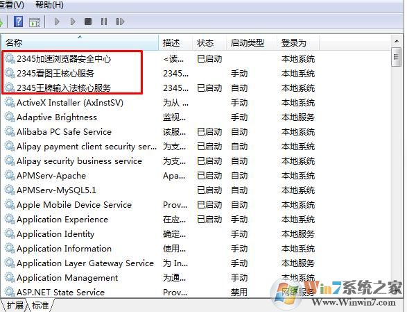 2、關(guān)閉軟件相關(guān)服務(wù),如下圖,有很多軟件都開啟了服務(wù),把他們設(shè)置為禁用,肯定能減少很多進(jìn)程,以下僅為示例
