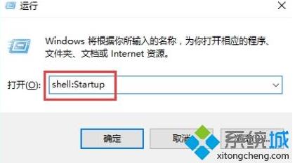 3、然后在點擊運行,輸入“shell:Startup”命令;