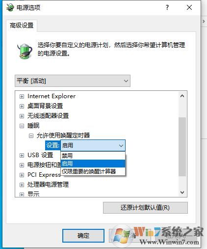 打開控制面板 → 系統(tǒng)和安全 → 電源選項(xiàng),在你當(dāng)前用的電源模式,點(diǎn)擊更改計劃設(shè)置 → 更改高級電源設(shè)置,找到睡眠 → 允許使用喚醒定時器,選擇禁用。