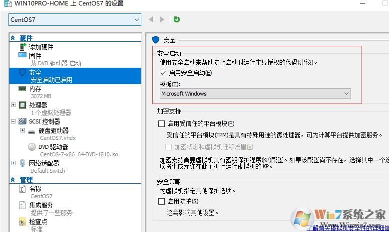 2、在【硬件】-【安全】-【啟用安全啟動(dòng)】這個(gè)選項(xiàng)下,把右側(cè)的啟用安全啟動(dòng)這個(gè)選項(xiàng) 取消勾選;