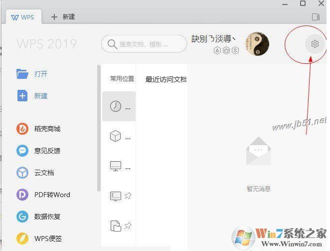 2、登錄到WPS2019之后呢,我們可以看到頭像邊上有一個設(shè)置圖標(biāo),如下圖,點擊進去