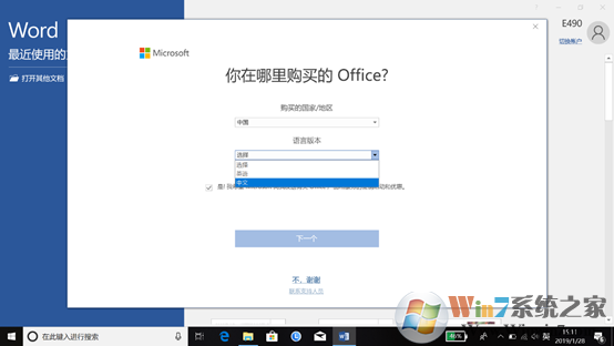 7、選擇國(guó)家和語(yǔ)言、購(gòu)買信息等資料,點(diǎn)擊下一步;