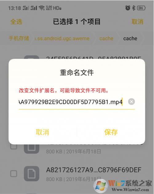 我們可以通過(guò)根據(jù)時(shí)間排序的方法,快速鎖定需要保存的視頻文件,或是先刪除緩存文件夾內(nèi)的所有文件再用抖音播放視頻,然后再按照上述操作就能便于找到了。將視頻緩存重命名,添加“.mp4”的后綴(圖3),就能直接用視頻播放軟件播放了。