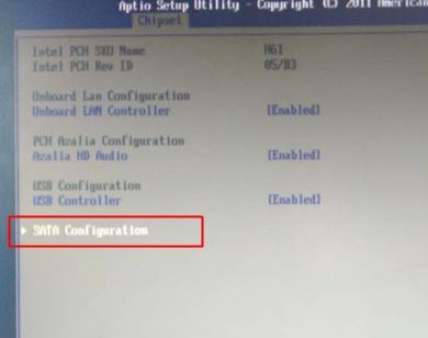 2、按↓方向鍵挑選SATA Configuration,按回車鍵進(jìn)到;
