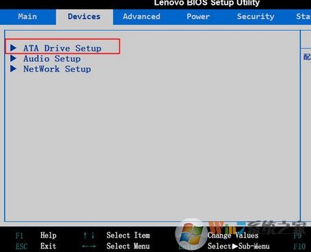 1、以c340為例,啟動(dòng)不斷按F1或Del進(jìn)到BIOS,按→轉(zhuǎn)換到Devices,挑選ATA Drive Setup回車鍵;