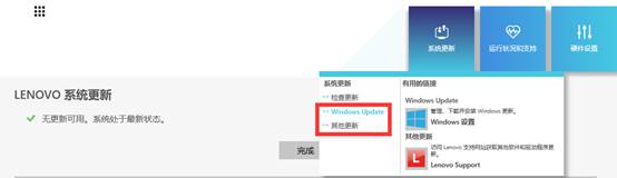 Windows update和其他更新——分別轉(zhuǎn)到系統(tǒng)下檢測更新頁面及跳轉(zhuǎn)Lenovo外網(wǎng)支持頁面。