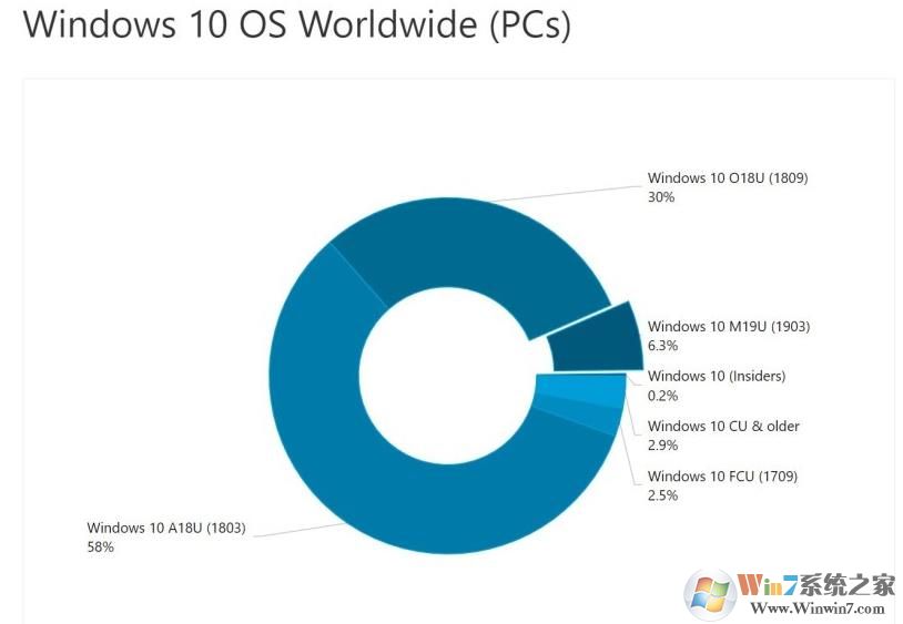 Win10 1903五月版更新占有率6.3%略有提升,1803仍舊增長