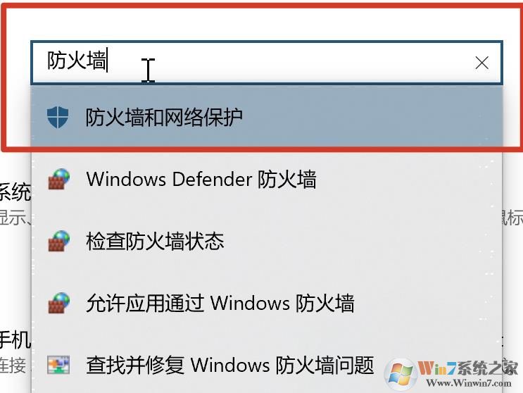 2、在Windows設(shè)置中,搜索防火墻,選擇防火墻和保護(hù)