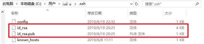 生成的密鑰對(duì)默認(rèn)保存在當(dāng)前用戶的根目錄下的.ssh目錄中(C:\Users\username\.ssh):