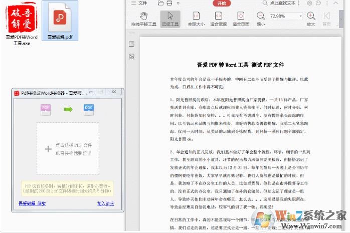 2、下載軟件后解壓,無需安裝,直接運(yùn)行吾愛PDF轉(zhuǎn)Word工具.exe
