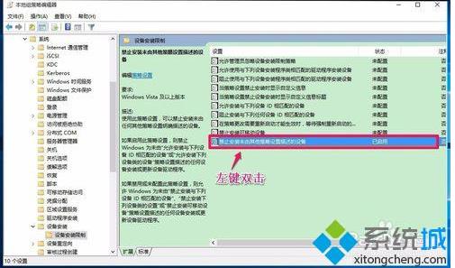 3、我們在系統(tǒng)的展開項中找到設(shè)備安裝 - 設(shè)備安裝限制,并左鍵單擊:設(shè)備安裝限制。