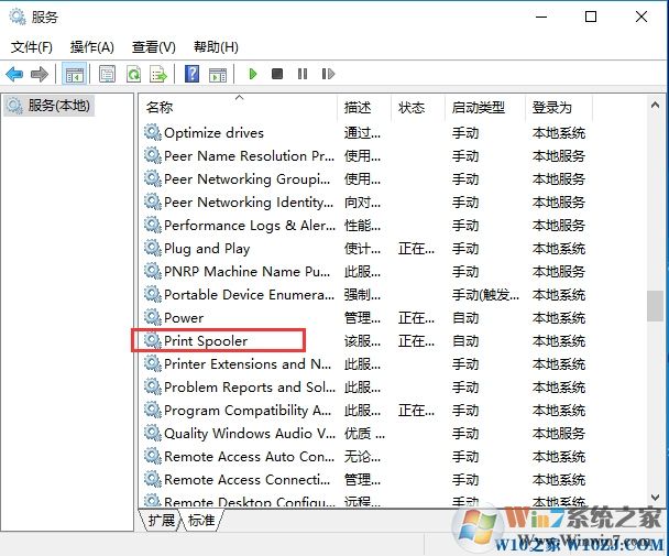 2、這時(shí)我們就可以打開本地服務(wù)管理列表,在列表中找到 print Spooler 服務(wù);