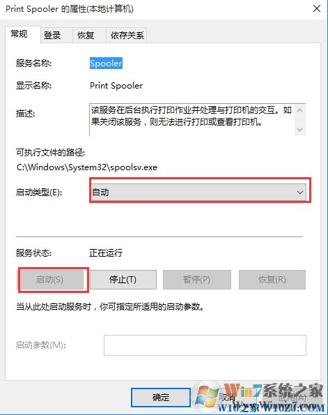 3、雙擊該服務(wù),設(shè)置啟動(dòng)類型為自動(dòng),然后點(diǎn)擊啟動(dòng) 按鈕啟動(dòng)print Spooler 服務(wù)并保存設(shè)置;