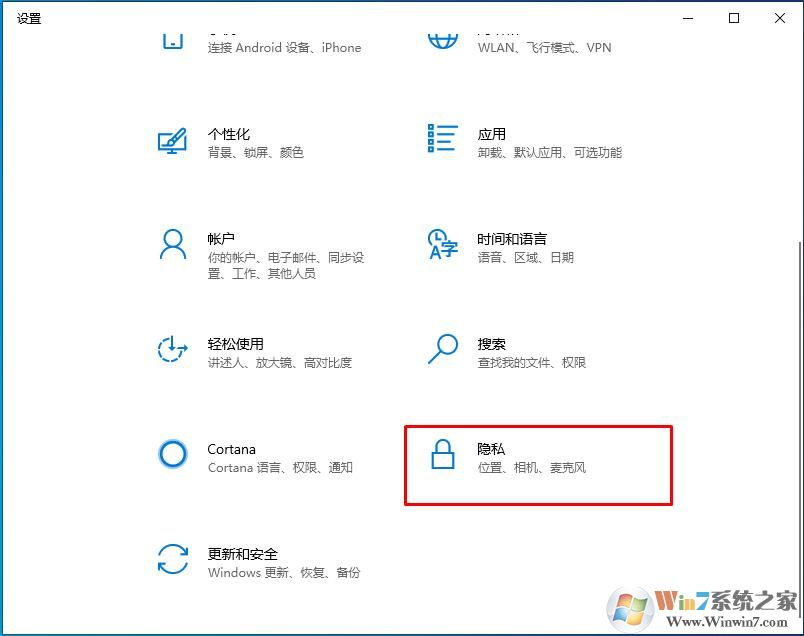 2、打開windows設(shè)置之后,我們再點擊 隱私選項進入;