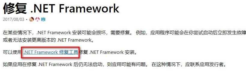 2、打開微軟官方中的 .NET修復工具來進行修復,下載地址:docs.microsoft.com/zh-cn/dotnet/framework/install/repair