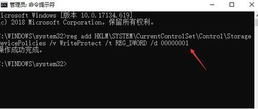 三、如果想再次保護(hù)U盤不被寫入,可以執(zhí)行下面的命令reg add HKLM\SYSTEM\CurrentControlSet\Control\StorageDevicePolicies /v WriteProtect /t REG_DWORD /d 00000001。
