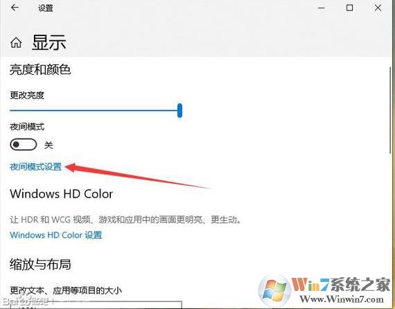 1、打開Win10系統(tǒng)的顯示設(shè)置,然后點(diǎn)擊夜間模式