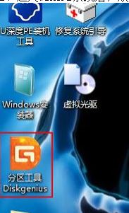 3、進(jìn)入PE系統(tǒng)后,雙擊桌面上“分區(qū)工具Diskgenius”程序;
