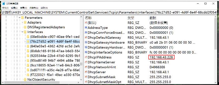 3. 在左側(cè)的interfaces文件夾下依次查看各個文件夾,找到右側(cè)的窗格中,自己正在使用或使用過的IP地址;