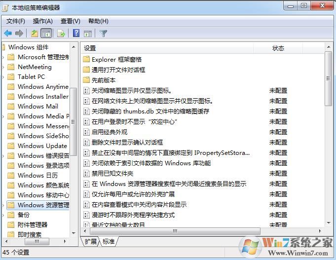 2、彈出“組策略”編輯對話框,依次展開“本地計算機策略→用戶配置→管理模板→Windows組件→Windows資源管理器”,