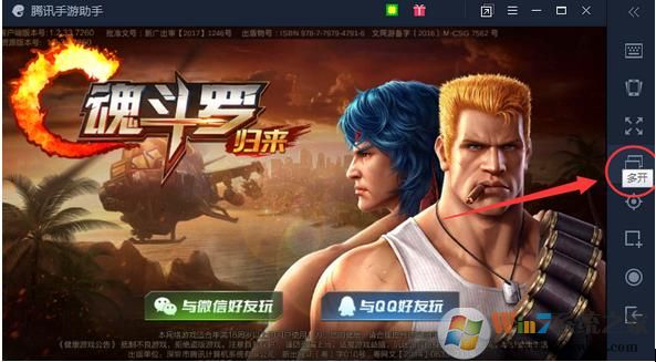2、運行游戲后會彈出一個騰訊手游助手游戲窗口,在這個窗口右側(cè)的功能列表中就可以看到“多開”的功能了。