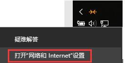 1. 首先查看自己Win10系統(tǒng)的IP地址,右鍵系統(tǒng)托盤的網(wǎng)絡(luò)圖標(biāo),點(diǎn)擊“打開‘網(wǎng)絡(luò)和Internet’設(shè)置”: