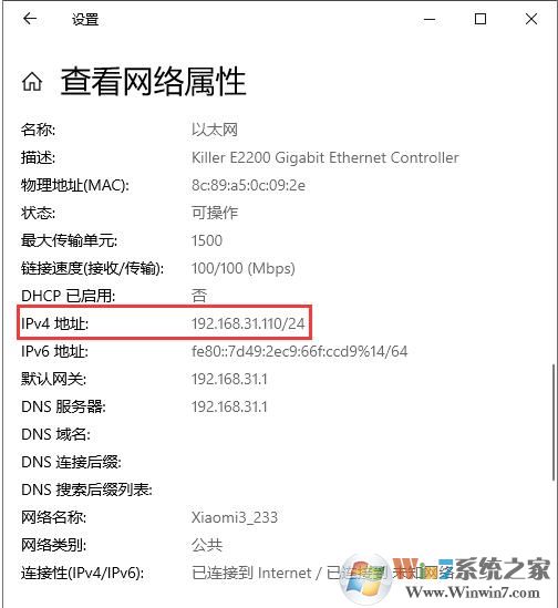 3. 找到當(dāng)前的IP地址,這里是“192.168.31.110”: