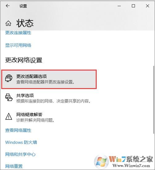 4. 之后更改IP,點(diǎn)擊上層的“更改適配器選項(xiàng)”:
