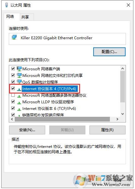 7. 雙擊打開“Internet協(xié)議版本4”來(lái)更改IPv4的IP地址: