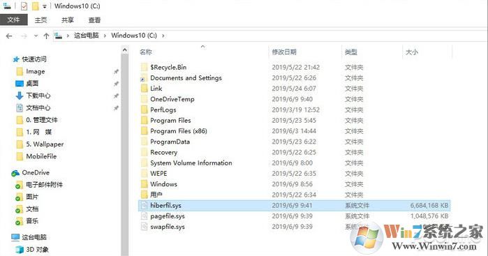 3. 關(guān)閉之后,我們需要重新啟動計算機,然后hiberfil.sys休眠文件就會被刪除了,看下圖,節(jié)省了很多空間哦。Win10系統(tǒng)下載 m.cncxm.com/win10/