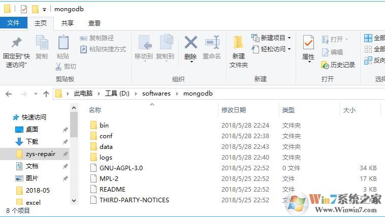 1.新建一個(gè)mongodb文件夾,用于放解壓出來的程序。