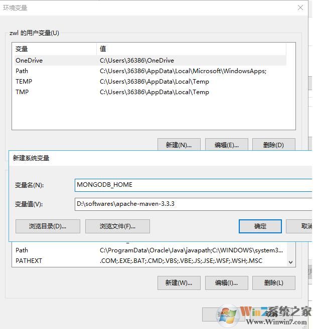 3、在Win10系統(tǒng)下配置mongodb的環(huán)境變量為%MONGODB_HOME%\BIN 設(shè)置好變量值