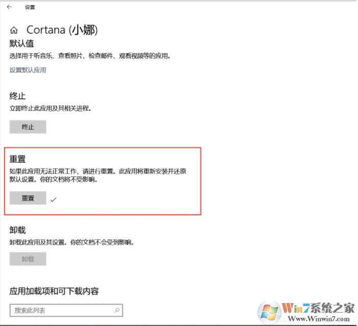 打開應(yīng)用設(shè)置后,選擇Win10【重置】