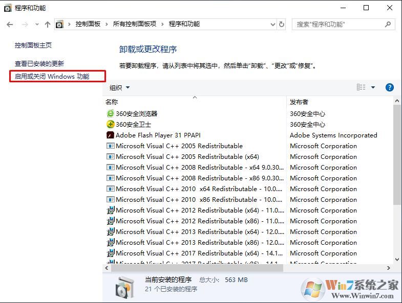 3、點(diǎn)擊啟用或關(guān)閉Windows功能選項(xiàng);