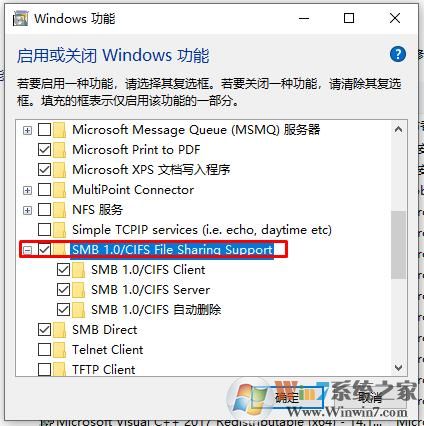 4、勾選SMB 1.0/CIFS File Sharing Support 選項(xiàng),確定;