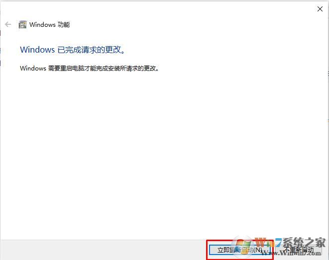 5、安裝完SMB 1.0支持之后重啟一下電腦;