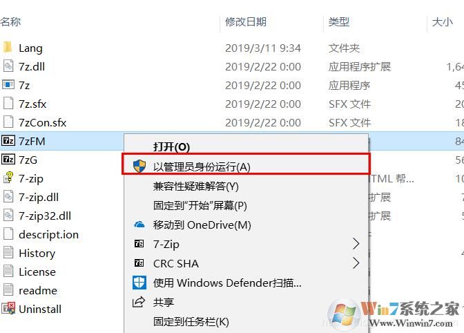 步驟四,右鍵以管理員權(quán)限運(yùn)行7zFM的應(yīng)用程序