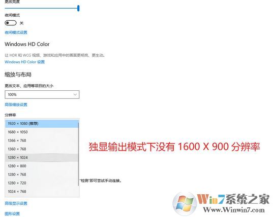 2. 此模式下無(wú)1600X900分辨率,如圖: