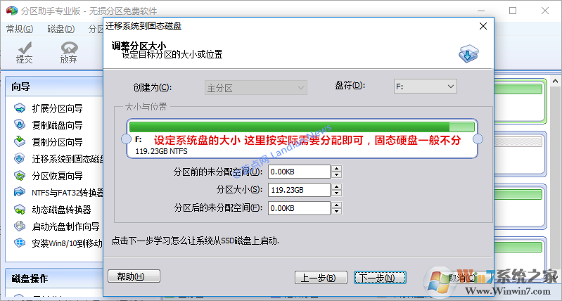 3、鼠標左鍵點擊目標未分配空間也就是我們剛剛刪除分區(qū)的空間,意思就是把系統(tǒng)遷移到這個未分配空間: