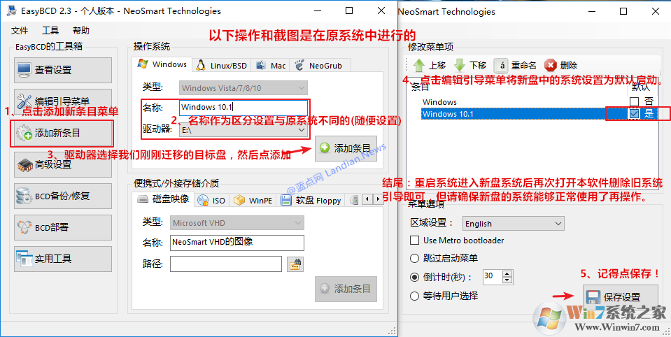 6.5、之后砍定固態(tài)硬盤中的系統(tǒng)已經(jīng)完全可用的情況下,打開EasyBCD將舊盤中系統(tǒng)的引導菜單刪除掉。