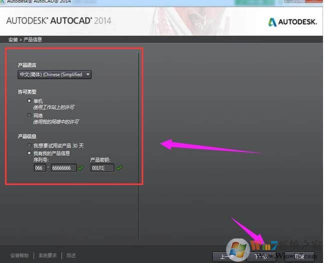 復(fù)制上去之后,點擊下一步就可以激活完成了,大家就可以免費使用CAD2014了。