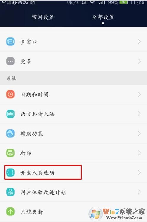 4、這時(shí)再回到上一級(jí)菜單就可以看到開發(fā)人員選項(xiàng)。