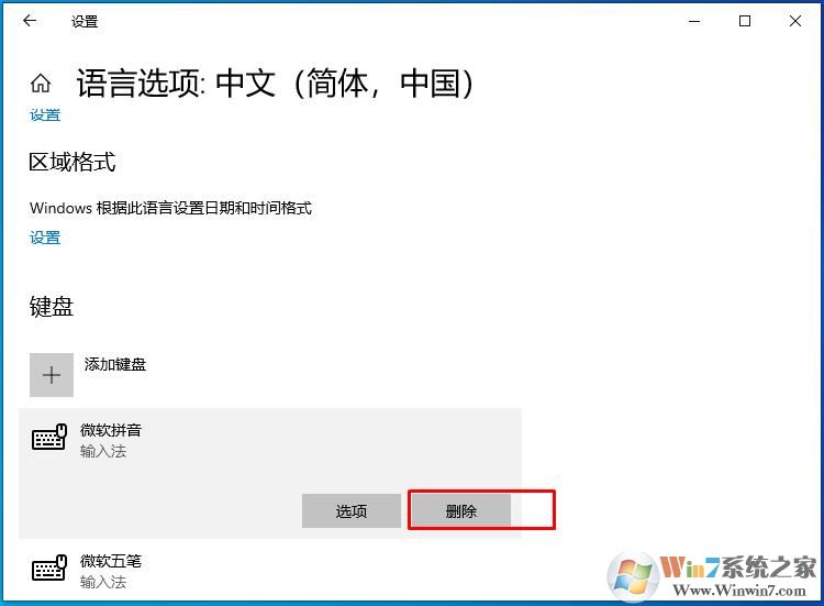 假如沒有微軟拼音的話,那么點(diǎn)擊添加鍵盤,先添加微軟拼音再刪除。